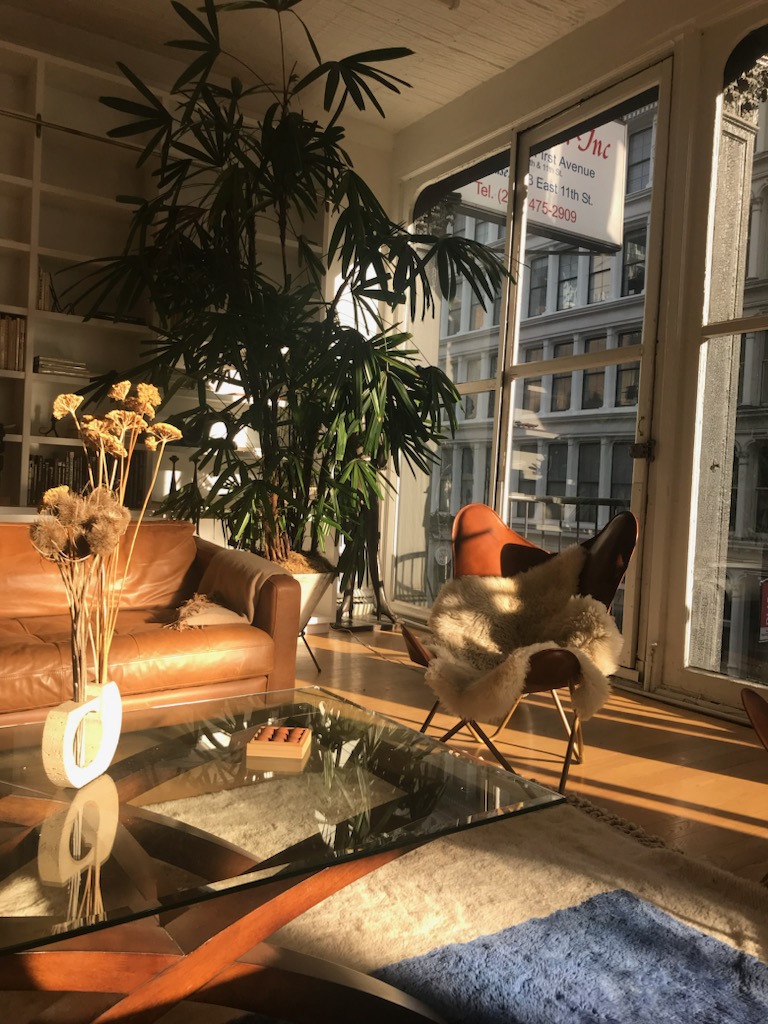 The light comes in from the east in the morning, through an alley midday, and bounces off buildings on Broadway late in the day (like here), basically basking the loft in light throughout the day. It’s some kind of magic.